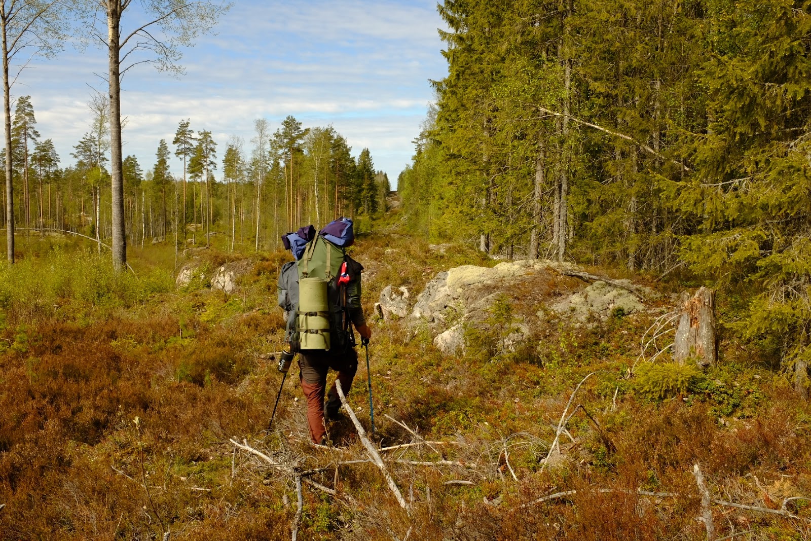 Slowly I'm becoming a hiker. The reality is becoming real and it is surreal. Some times the feeling of loniless and solitude kicks in but then suddenly out of the blue something amazing happens. Like when a freaking badger took me by surprise (perhaps it was the other way around) and he ran scared shitless away. Or all the birds that come so close when I sit still in camp and read. And espcially the beaver-engineers working on their construction site taking down sometimes trees much bigger than they would ever be able to transport back time! Or simply just how good it feels to have company when it's there and then go back into my own world and destiny. I'm familiar with solo adventures but now I'm familiarizing with it again.
